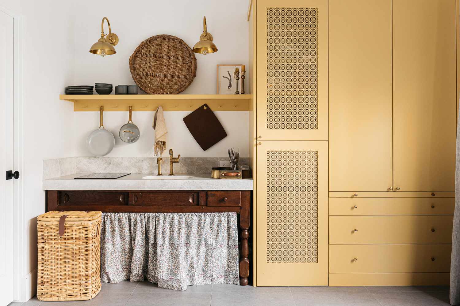 Open shelving is trendy, but it can quickly look messy. The solution? Baskets. They conceal everything from cords and tech gadgets to toiletries and remote controls, keeping your shelves looking neat and stylish while doubling as secret storage containers.